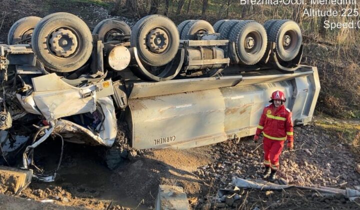 „Cu puțin timp în urmă, trei echipaje din cadrul Detașamentului de Pompieri Drobeta Turnu Severin au intervenit cu o autospecială de descarcerare, o autospecială de stingere și o ambulanță SMURD pentru gestionarea unui accident rutier produs pe raza localității Breznița-Ocol, unde o autobasculantă s-a răsturnat. La locul evenimentului a fost direcționat și un echipaj SAJ.