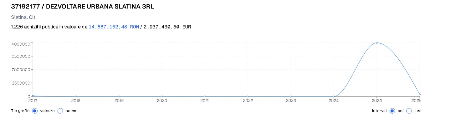 Totodată, datele SICAP relevă faptul că achziţiile făcute de Dezvoltare Urbană au explodat din 2024, fix de când Mario De Mezzo şi şleahta sa au preluat conducerea Primăriei Slatina.