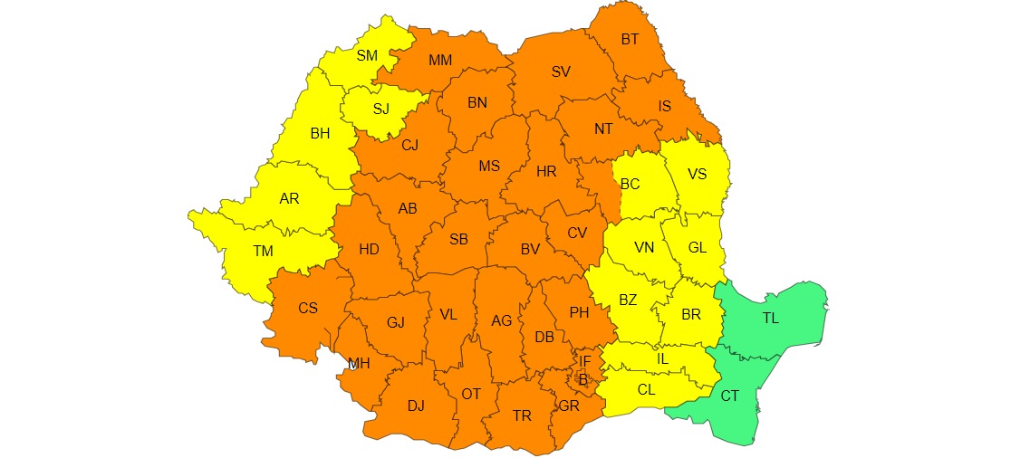 Avertizarea este valabilă în intervalul orar 2 iulie, ora 10 – 3 iulie, ora 10.