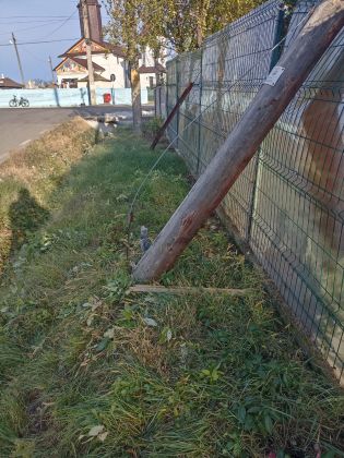 – stâlp de lemn care prezintă pericol să cadă într-o gospodărie din Recea;