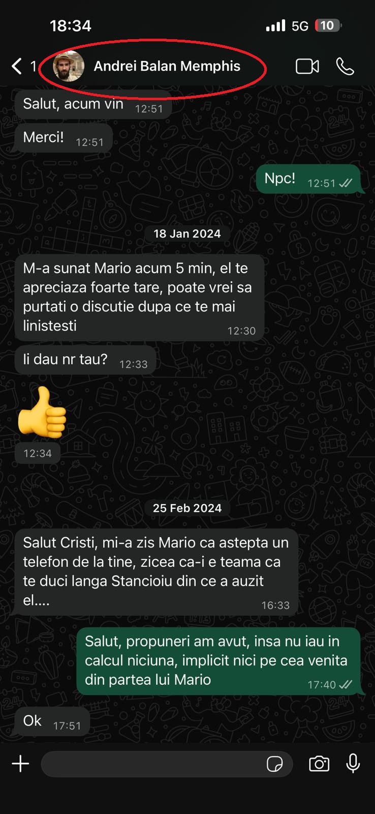„Salut Cristi, mi-a zis Mario că așteaptă un telefon de la tine, zicea că-i e teamă că te duci lângă Stăncioiu, din ce a auzit el…“, scria Andrei Bălan.