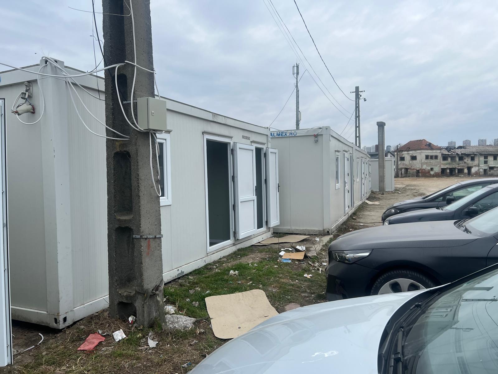 Imaginile surprinse la fața locului sunt grăitoare pentru condițiile inumane în care au fost așezați sinistrații. Containerele sunt montate direct pe un teren viran, plin de noroi și resturi de construcții. În spatele acestor module de locuit se ridică ruinele unor clădiri dezafectate, cu planșee de beton prăbușite și armături ruginite ieșite din ziduri, reprezentând un pericol iminent, în special pentru copii.