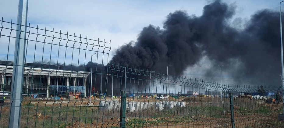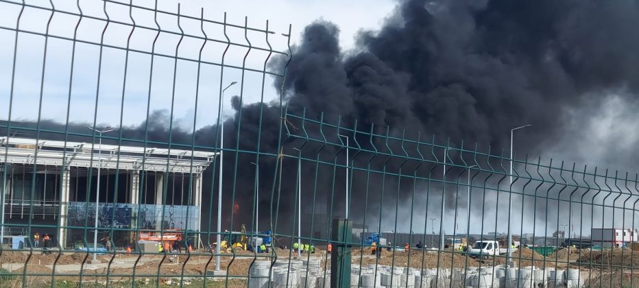 Au ars materiale de construcții aflate în fața clădirii noului terminal, din cauza scânteilor unui aparat de sudură utilizat cu neglijență de muncitorii aflați pe șantier.