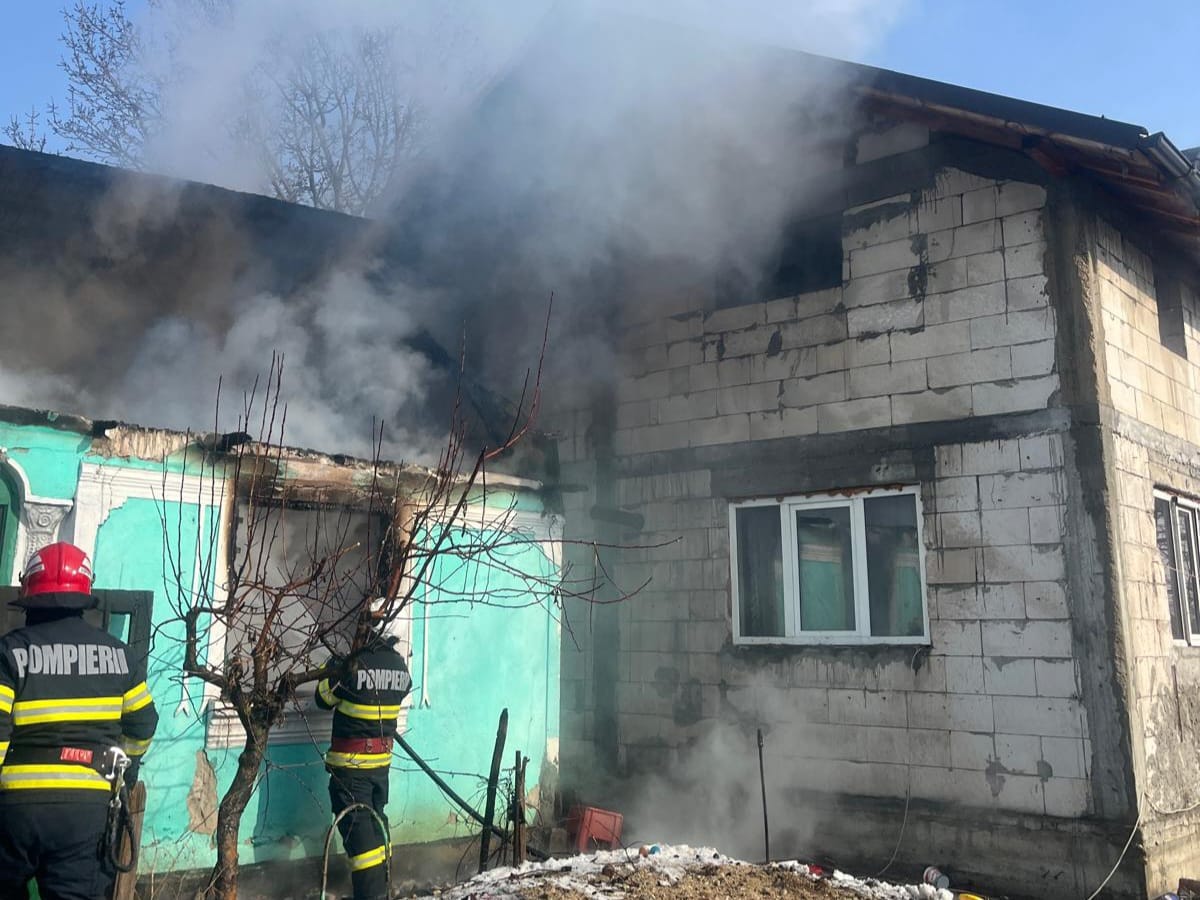 Un incendiu izbucnit din cauza unui scurtcircuit electric a distrus complet o casă nelocuită din comuna Șerbănești și a afectat acoperișul locuinței învecinate, intervenția pompierilor durând aproximativ două ore.