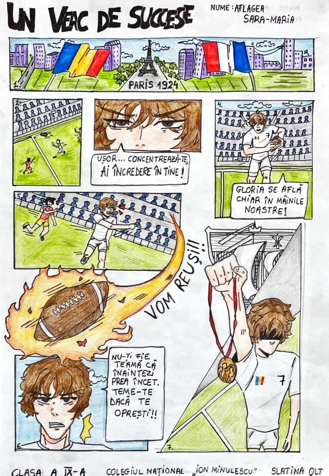 „Municipiul Slatina și județul Olt au fost reprezentate cu cinste la cea de-a V-a ediție a Olimpiadei de Benzi Desenate. Sara-Maria Aflagea, elevă în clasa a IX-a la Colegiul Național „Ion Minulescu” din Slatina s-a situat printre cei mai buni concurenți din țară, lucrarea ei obținând premiul al II-lea la Olimpiada de Benzi Desenate. Tema lucrării a fost: Romania 100 ani la Jocurile Olimpice (100 de ani de la prima medalie olimpica obtinuta de Romania la JO, Paris 1924)”, transmit reprezentanţii bibliotecii.