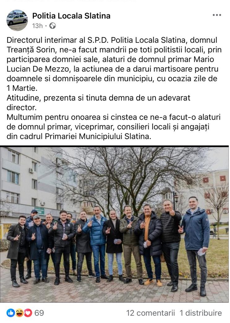 Mesajul cu pricina a fost postat de 1 Martie, cu ocazia participării directorului Sorin Treanţă la „activitatea de a dărui mărţişoare pentru doamnele şi domnişoarele din municipiu”.